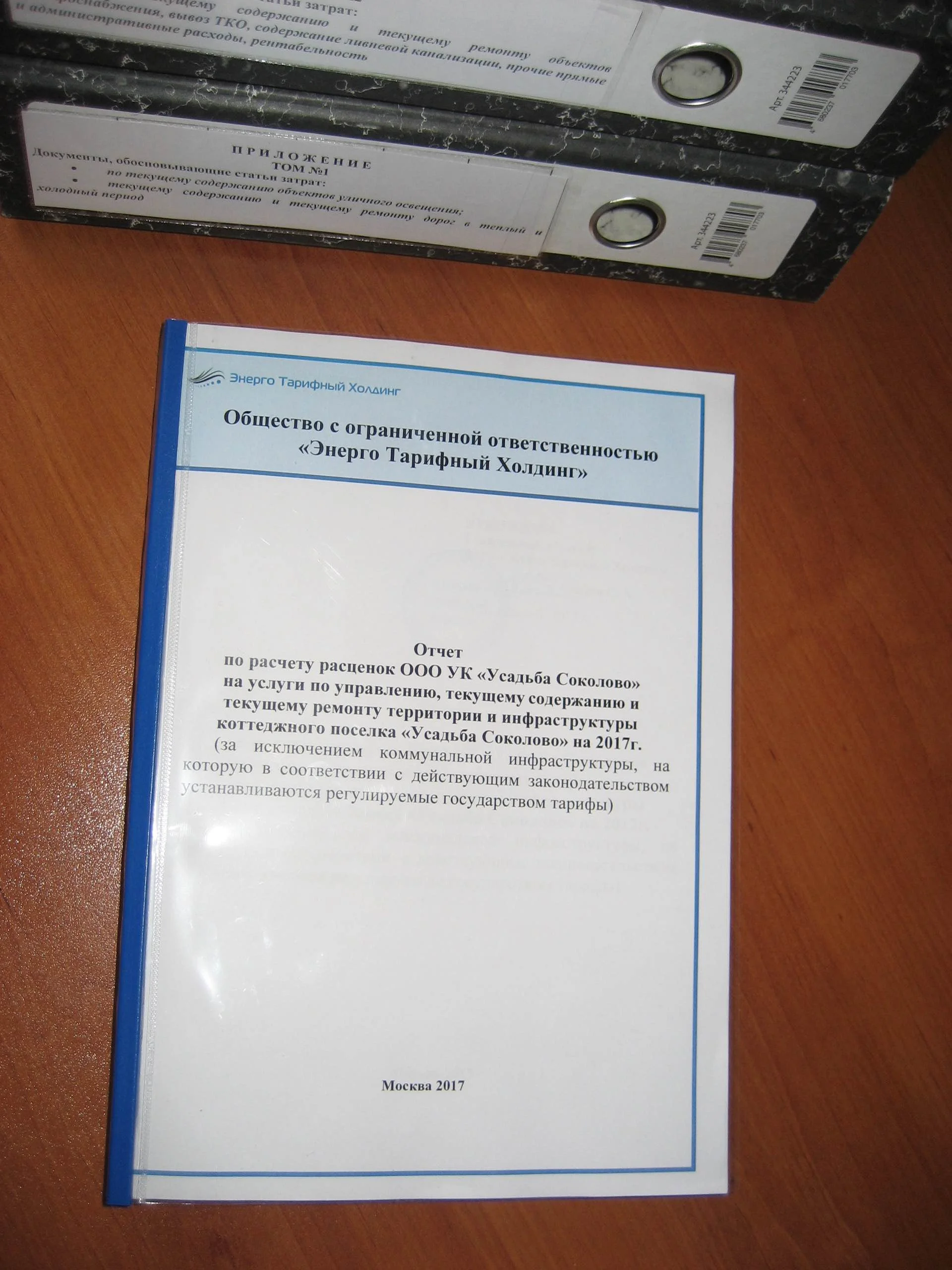 Заказчик (управляющая компания) от ООО «Энерго Тарифный Холдинг» получает Отчет, содержащий экономически обоснованный расчет расценок на услуги по эксплуатации инфраструктуры коттеджных поселков и/или поселков малоэтажной застройки с ссылками на нормативно-правовые акты и приложением всех обосновывающих документов.